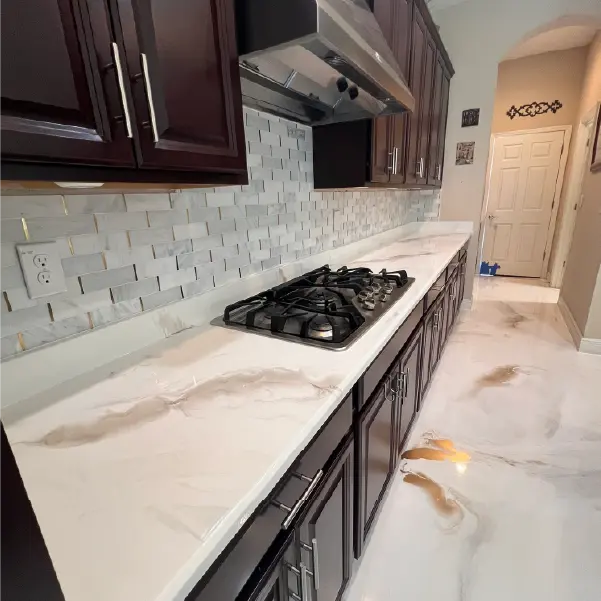 Go beyond floors with our custom epoxy countertops and Venetian Plaster wall designs — adding a modern, artistic flair to any space.