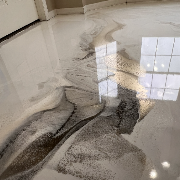 Add a touch of luxury to your home or business with metallic epoxy flooring. These decorative coatings create unique, marble-like effects that play with light — ideal for showrooms, offices, basements, or living areas.
